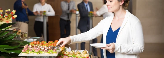 Opções sofisticadas e práticas para intervalos, reuniões e momentos de networking, com apresentação impecável.
